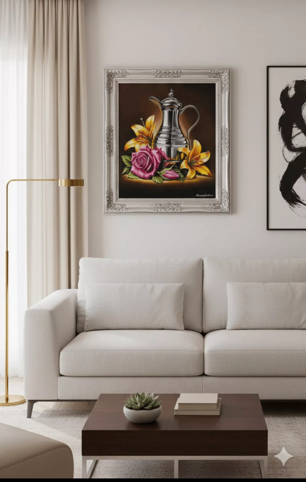 Jarra de inox e lirio amarelo