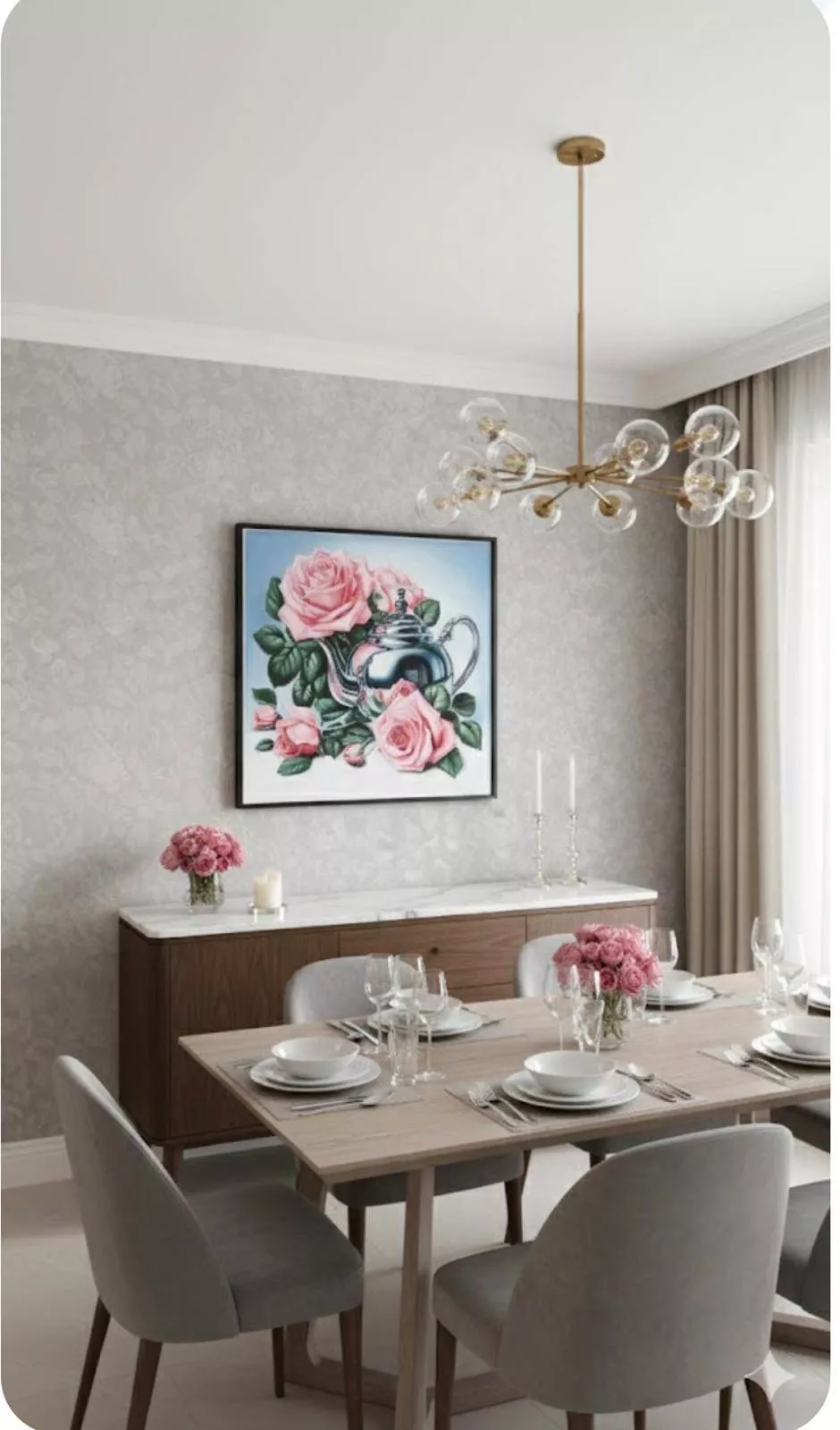 Ramo rosa bebe e chaleira inox